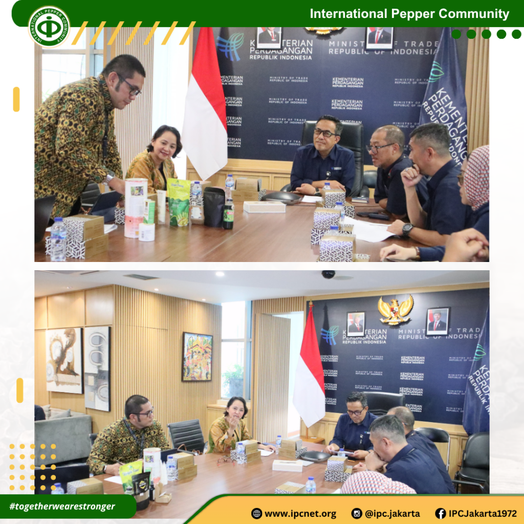 Executive Director of the International Pepper Community, Mrs. Marina Novira Anggraini, and her team had the privilege of meeting with the Secretary General/Acting Director General of Foreign Trade, Ministry of Trade of Indonesia, Drs. Isy Karim, M.Si., to exchange views on the current challenges facing the global pepper industry. The meeting also marked an important step forward in Indonesia’s preparation as the Chair and Host of the 54th IPC Annual Session and International Spice Exhibition in 2026. Stronger synergy between IPC and its member countries is key to navigating global uncertainties and unlocking new growth opportunities for the pepper sector. Let\'s move forward — together. #PepperForTheWorld #StrongerTogether #SpiceIndustry #KolaborasiUntukKemajuan #SustainableTrade #InternationalPepperCommunity